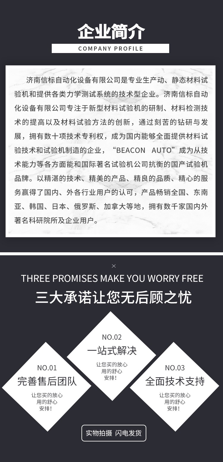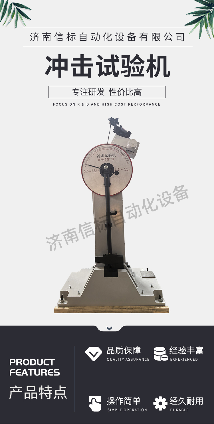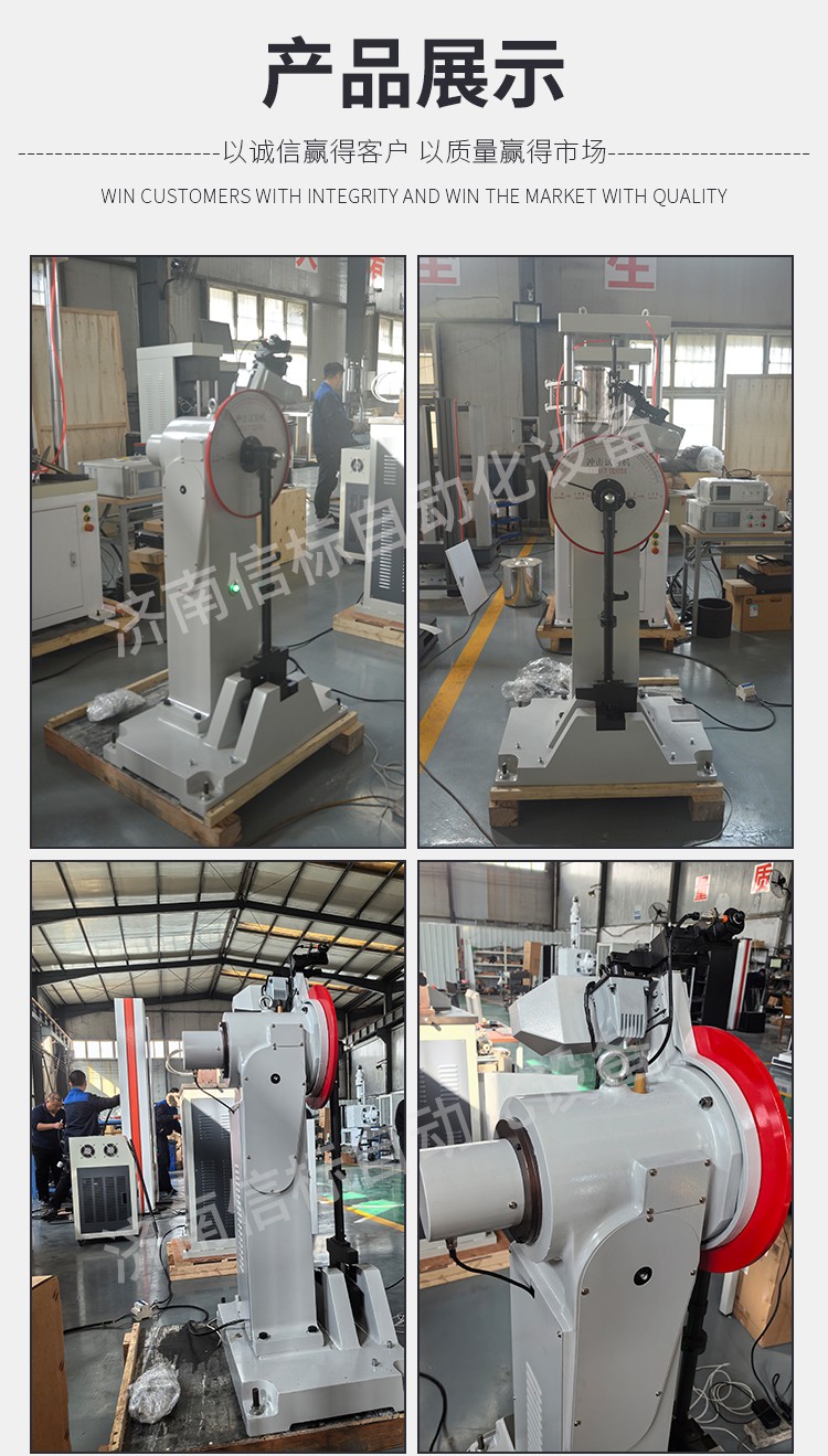 本機為微機屏顯式半自動沖擊試驗機,采用PC微機機控制,電動揚擺、沖擊、微機測量、運算、屏幕數顯結果并可打印等,工作效率高、測試精度高。在沖擊試樣后可利用剩余能量自動揚擺,做好下次試驗準備,操作簡便,工作效率高。在連續做沖擊試驗的試驗室和大量做沖擊試驗的冶金、機械制造等行業更能體現其優越性。計算機可計算和數顯材料沖擊吸收功、沖擊韌性、擺錘揚角及試驗平均值,并可打印當次試驗數據及試驗的平均值。 按照 GB/T3808-2018 (擺錘式沖擊試驗機的檢驗)及 ISO148-2(金屬材料擺錘式夏比沖擊試驗第二部分,試驗機檢定)、ASTM E23 相關標準生產制造符合 GB/T229-2020(金屬夏比缺口沖擊試驗方法)、ISO148 (金屬材料擺錘式夏比沖擊試驗)、JJG 145-2007 (擺錘式沖擊試驗機檢定規程) 四、主要技術指標: 1、沖擊能量:150J、300J 2、擺錘預揚角:150° 3、擺軸中心至沖擊點距離:750mm 4、沖擊速度:5.2m/s 5、試樣支座跨距:40mm 6、鉗口圓角:R1-1.5mm 7、沖擊刀刃圓角:R2-2.5mm 8、沖擊刀厚度:16mm 9、角度準確度:±0.1° 10、試樣尺寸:10×10×55mm 11、外形尺寸:2124 mm×600 mm×1340 mm 12、試驗機凈重:450Kg 13、電源:交流三相 380V±10% 50HZ 5A 14、環境條件:周圍環境中無腐蝕介質,無震動,無強電磁場干擾。 五、設備主要配置: 1、300焦耳主機一臺; 2、150J、300J 擺錘各一個 3、取擺傳動裝置一套(裝在主機上) 4、自動掛擺裝置一套(裝在主機上) 5、保險機構一套(裝在主機上) 6、安全防護裝置一套 7、擺錘拆卸器一只 8、支座調校器一只 9、試樣對中器一只 10、聯想打印機一套 專用測量軟件一套