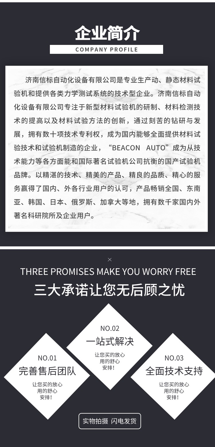 濟南信標自動化設備有限公司主要生產:動靜態萬能疲勞試驗機,接骨板彎曲試驗機,縫合線拉伸疲勞試驗機,髖膝關節磨損試驗機,電子萬能試驗機、液壓萬能試驗機、巖石三軸、四軸,電液拉力試驗機,材料試驗機,高低溫蠕變,高低頻疲勞,拉伸、扭轉、杯突等二十多個系列兩千多個的品種。
