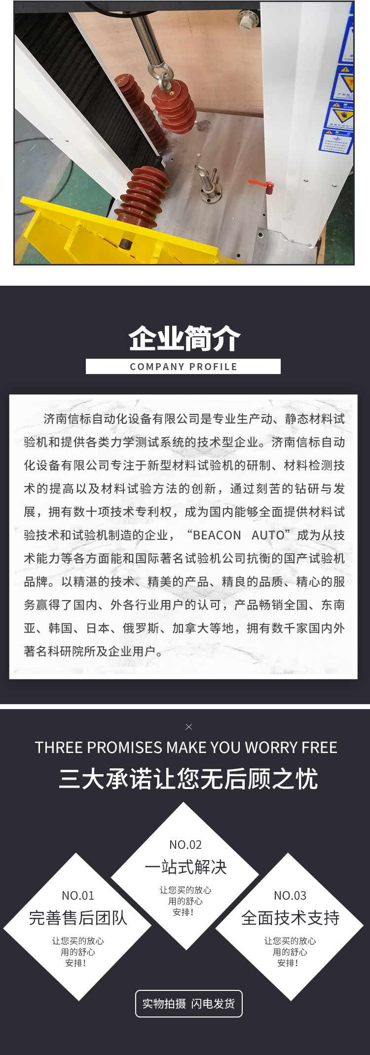 濟南信標自動化設備有限公司主要生產:動靜態萬能疲勞試驗機,接骨板彎曲試驗機,縫合線拉伸疲勞試驗機,髖膝關節磨損試驗機,電子萬能試驗機、液壓萬能試驗機、巖石三軸、四軸,電液拉力試驗機,材料試驗機,高低溫蠕變,高低頻疲勞,拉伸、扭轉、杯突等二十多個系列兩千多個的品種。