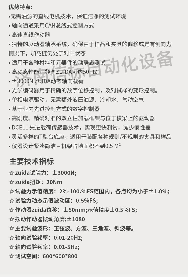 微機伺服動靜態疲勞測試系統設備特點