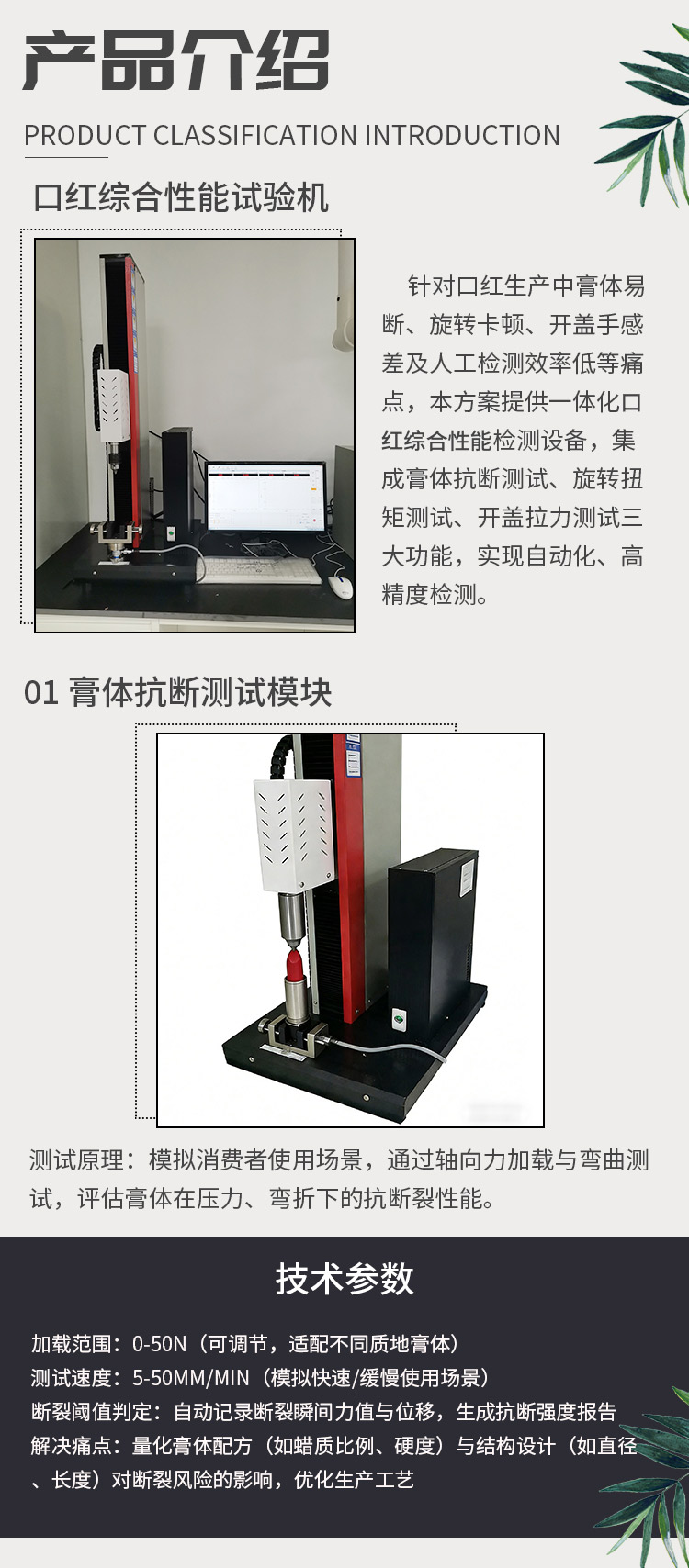 口紅綜合性能試驗機 膏體抗斷測試 旋轉扭矩測試 開蓋拉力測試