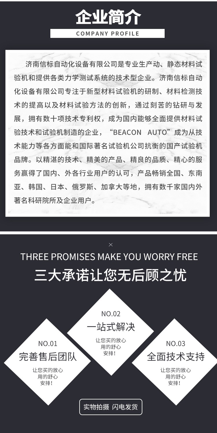 濟南信標自動化設備有限公司主要生產:動靜態萬能疲勞試驗機,接骨板彎曲試驗機,縫合線拉伸疲勞試驗機,髖膝關節磨損試驗機,電子萬能試驗機、液壓萬能試驗機、巖石三軸、四軸,電液拉力試驗機,材料試驗機,高低溫蠕變,高低頻疲勞,拉伸、扭轉、杯突等二十多個系列兩千多個的品種。