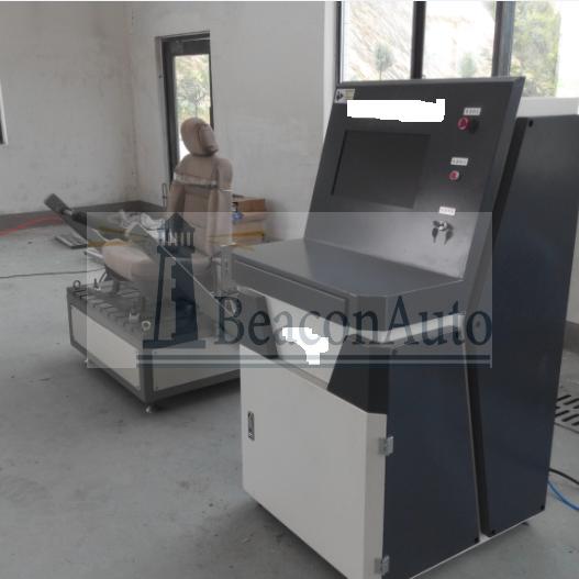 汽車座椅調角器耐久疲勞試驗臺 1、概述 汽車座椅調角器耐久疲勞試驗臺設備用于測試座椅調角器工作耐久性,調角器沖擊耐久性,回位力矩。 本試驗臺結構簡單,性能穩定,操作方便,安全可靠,采用自動加力、自動計時,多項目耐久測試,到達設定試驗時間后自動停止測試,自動記錄試驗數據,并繪制曲線等功能。 特別聲明: l 本簡介概述不能作為向本公司提出任何要求的依據 l 本公司保留對本簡介概述的解釋權 l 本公司保留在滿足客戶要求的基礎上變更設計的權利 l 該設備的制造嚴格按照國家標準進行。本方案的制訂僅代表我公司能制造該設備。為保證客戶方和我公司的的信息保密,雙方需要妥善保存及處理好相對應的技術資料或提供的試驗標準。在未經雙方同意時,所涉及的技術資料及試驗標準嚴防外泄。 2、依據標準 ? QC/T 844-2011 《乘用車座椅用調角器技術條件》 ? JT/T 460-2005 《客車座椅靠背調角器技術條件》 3、 型號說明 TJNJ-02-------------汽車座椅調角器耐久性能試驗臺 4、 試驗項目 座椅調角器工作耐久性 5、汽車座椅調角器耐久疲勞試驗臺主要參數 4.1拉壓力傳感器:250N,精度0.2% 4.2擺臂轉動角速度:0.87-3.49rad(10)/s; 4.3轉動角度:±90°(以垂直地面為0°);調角器解鎖行程:0-100mm ; 4.4轉動頻率:0-10次/分鐘 ;帶鎖0-5次/分鐘(中間開鎖位置越多越慢); 4.5工作電壓功率:380V,2.5Kw,恒壓干燥氣源輸出≤0.8MPa 4.6可對試驗過程中的力值及行程等參數進行實時監控及試驗過程中的數據保存,并可出據試驗報告 5、汽車座椅調角器耐久疲勞試驗臺性能特點 5.1本設備融合國家座椅相關標準內容,結合客戶企業相關標準進行增加改進。本試驗臺采用易裝夾式結構,采用框架結構及鈑金噴塑殼體,結構穩定,適用于各種不同種類的座椅總成的手動調角器以及類似產品進行動作疲勞測試; 5.2擺動部分采用伺服電機搭配行星減速機作為動作執行源,伺服電機的優點是位置及角度控制較好,搭配減速機將擺動速度降低,將擺動扭矩升高; 5.3擺臂中心與座椅調角器中心不同心問題,圓周運動時對應線性容易造成卡滯,我們經過反復研討,確定運用雙光軸定位,雙滾珠軸承螺母導向,調心軸承組連接使調軸不同心時,對對應線性進行補償,達到圓周擺動效果; 5.4可進行自動回彈式座椅的疲勞試驗和非自動回彈式座椅的疲勞試驗,可對自動回彈式座椅是否回位進行反饋; 5.5執手開啟機構,實現機械限位與光電限位配合模式,防止開鎖力過大對整體機構進行過沖性破壞; 5.6可對轉動實時扭矩進行監控,對極限值進行采集并且記錄;